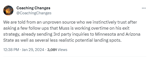 @Hill Arizona State? I can see why Muss would leave. I thought it would be Louisville or a west coast University
