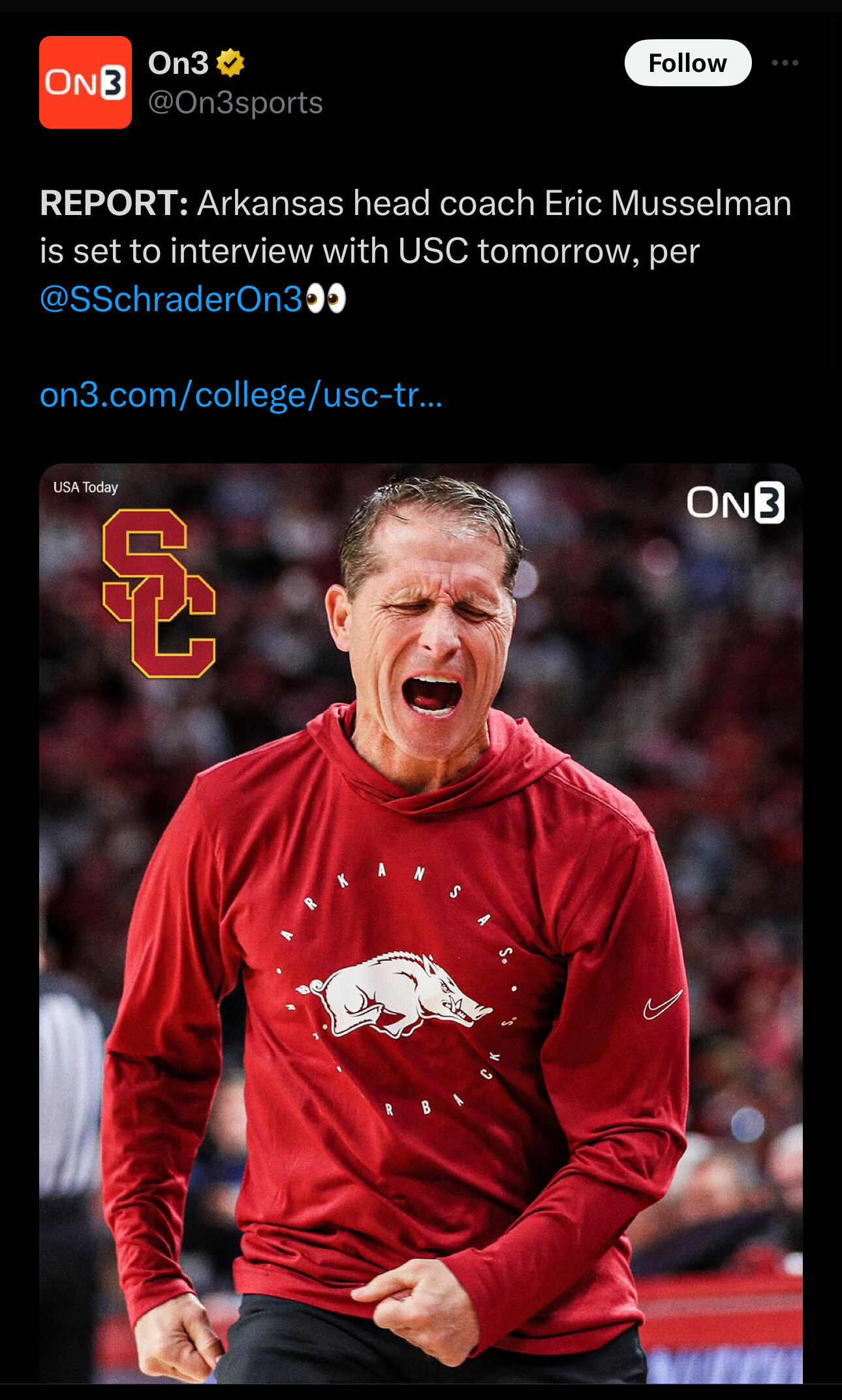 I’m really surprised he wants USC over Arkansas.
