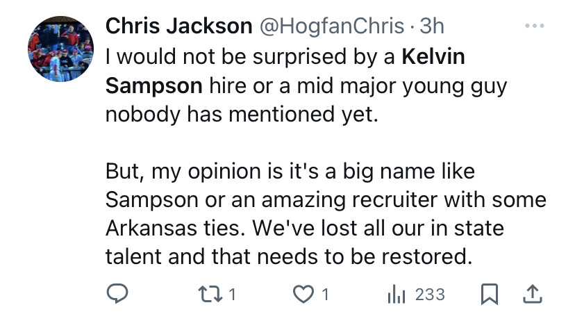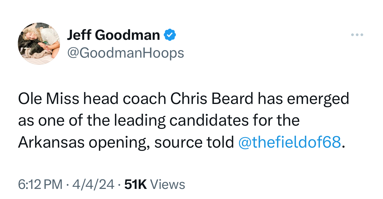 Arkansas is a hard gig - past success so people think it’s supposed to be the same all the time despite population shifts, league realignments, etc