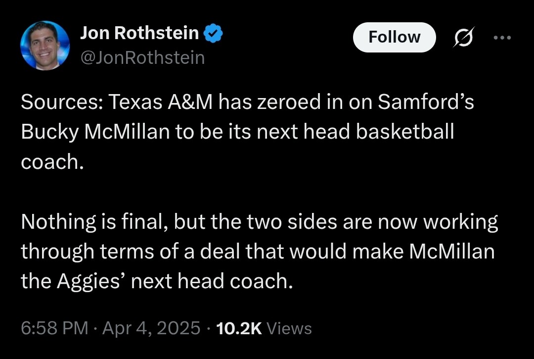This tweet is interesting. Brian Davis is a well connected sports reporter based in Austin and used to be the UT beat writer for the Austin American Statesman. He says Chris Beard contacted A&M before there was even an opening. He played A&M to get more money from Mississippi.