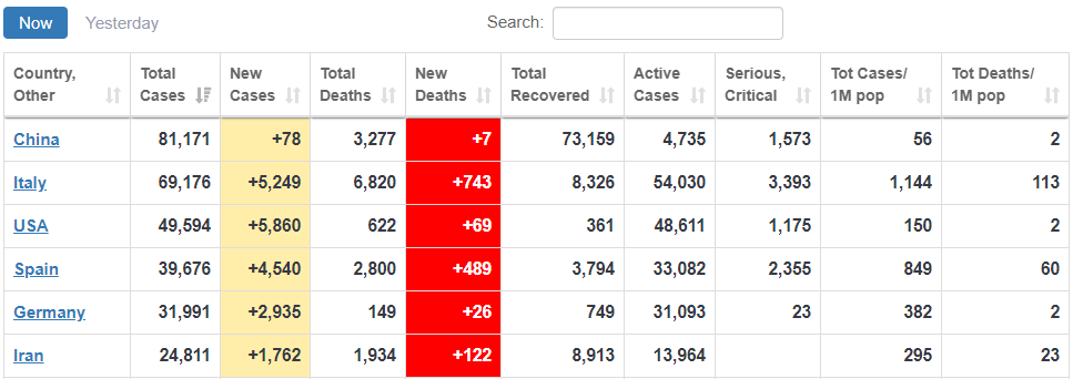 For those of you who are worried about the economy, etc…understand this: the government and/or the media are not over-hyping this pandemic. They are actually LATE to the party. This is going to be bad. Really, really bad. There is no way to prevent most of the population from being exposed at this point. The only way to prevent unthinkable loss of lives is to isolate and stretch out the rate of exposure over time.