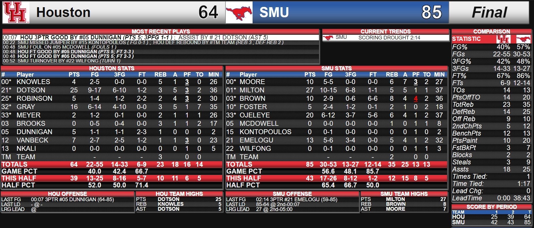 49-38 as Dot hits another 3 and a quick SMU timeout.