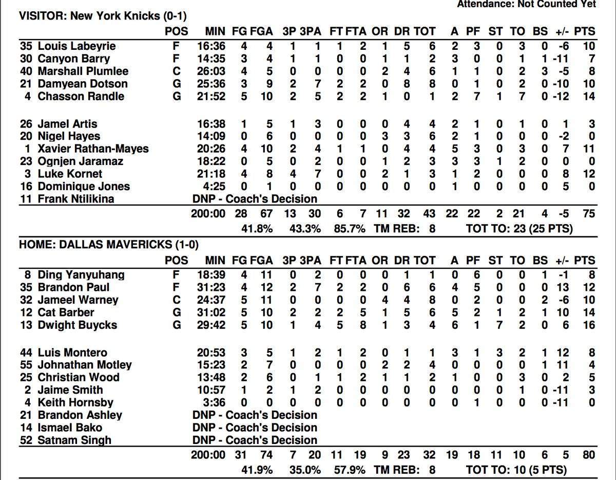 Orlando beat the Knicks 84-73. Dotson didn’t have a great offensive game, but did do a little bit of everything: