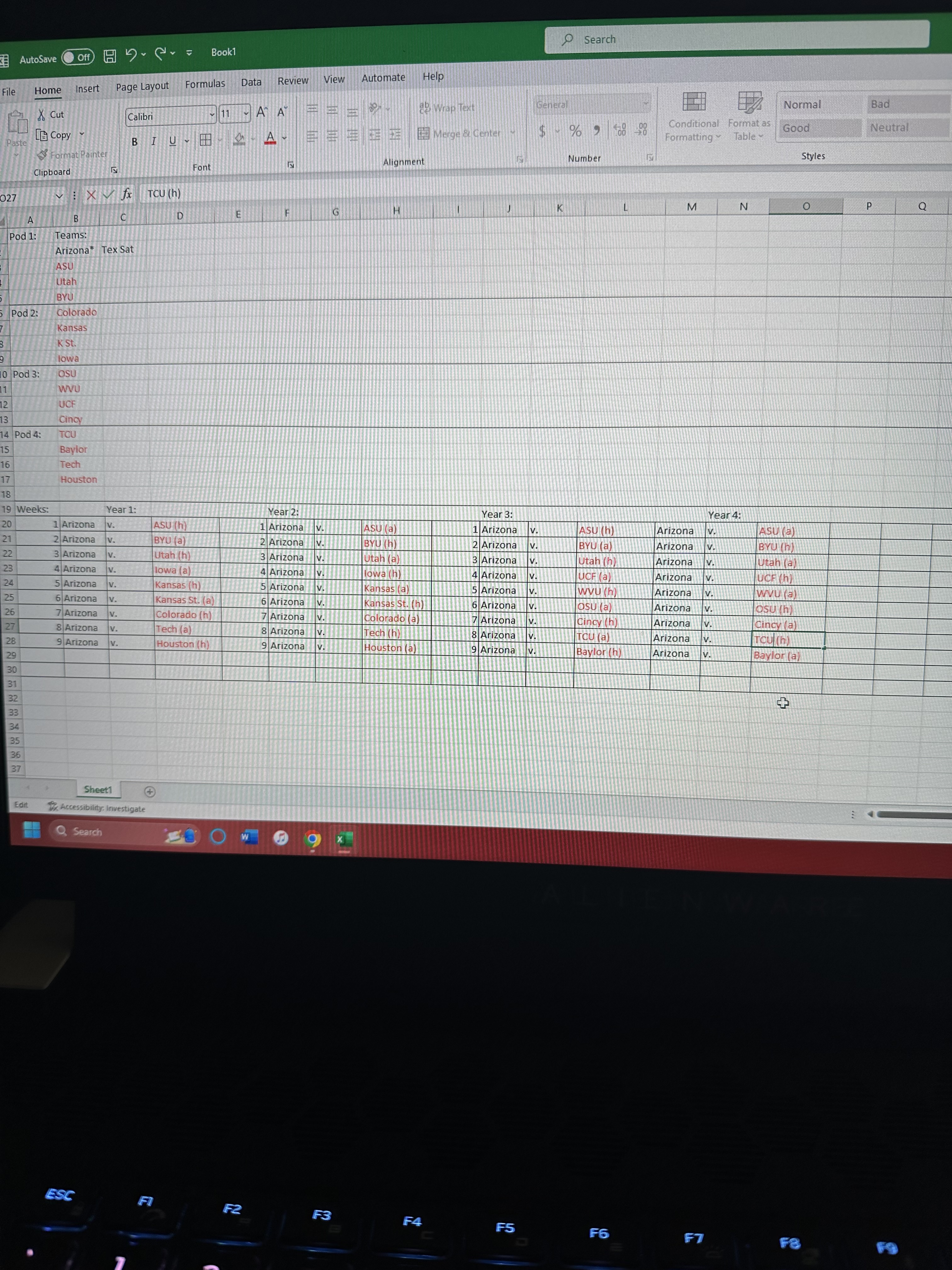So the problem Im running into is ALOT of teams primary preferences overlap. This is causing a massive scheduling headache. And it actually makes it worse if you split up the Texas teams vs keeping them together ironically. And even more ironically UH is causing the most headaches scheduling wise. Because UH’s to primary rivals would have to be Texas teams. Otherwise UH need to be prepared to play only one Texas team every year and at home every 2 years.
