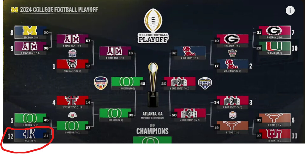 Has to be. Both teams have 3 or more losses. lol Just thought it was funny someone picked rice as an example of a team that made it.
