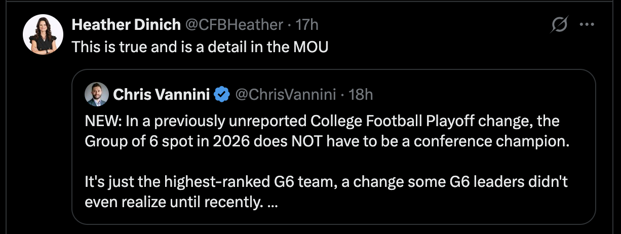 The 2 G6 schools getting rolled in the cfp didn’t help their cause…