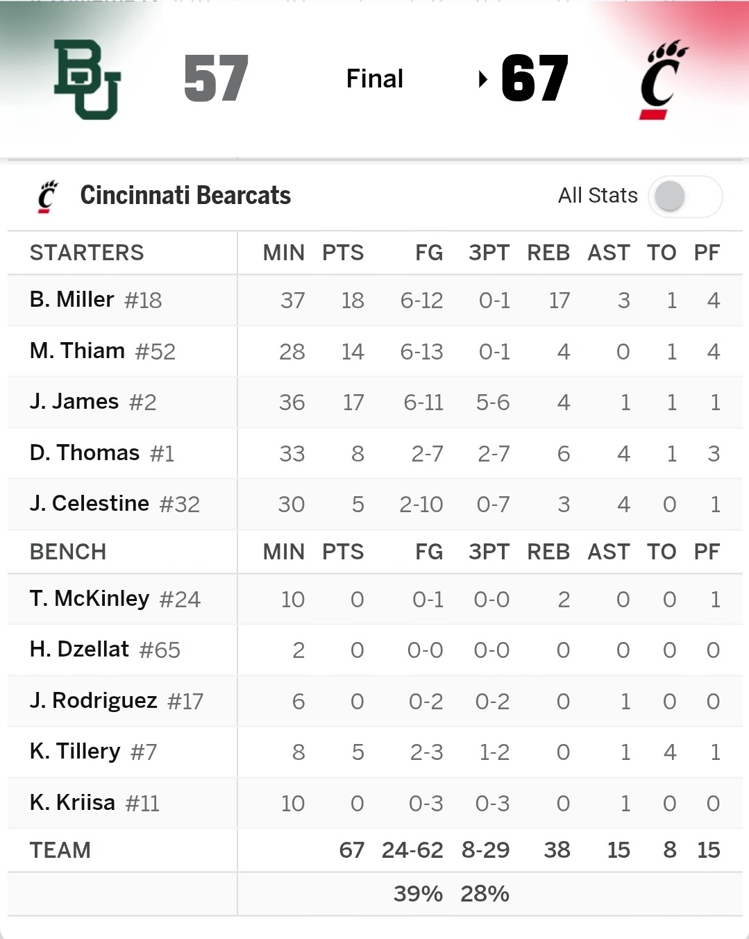 Bearcat fan here. I hope you’re all doing well.