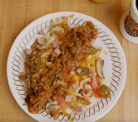 No one’s going to Waffle House for bowl of their chili, right? But it’s damn good on scatteredsmotheredcoveredchunkedtoppeddicedandpeppered hash browns.