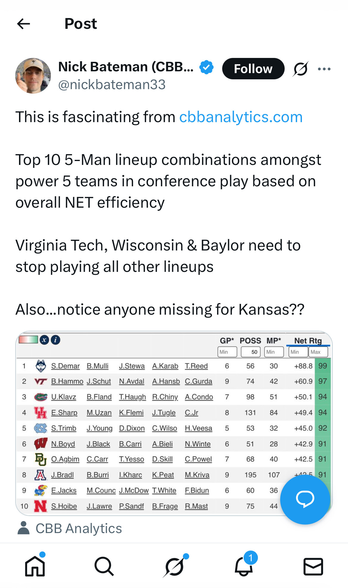 teams are still gonna āget upā for us but the perks are we have way more chances to mask up a questionable loss with a big 12 schedule plus a mini-slump isnāt going to plummet our seeding now lol