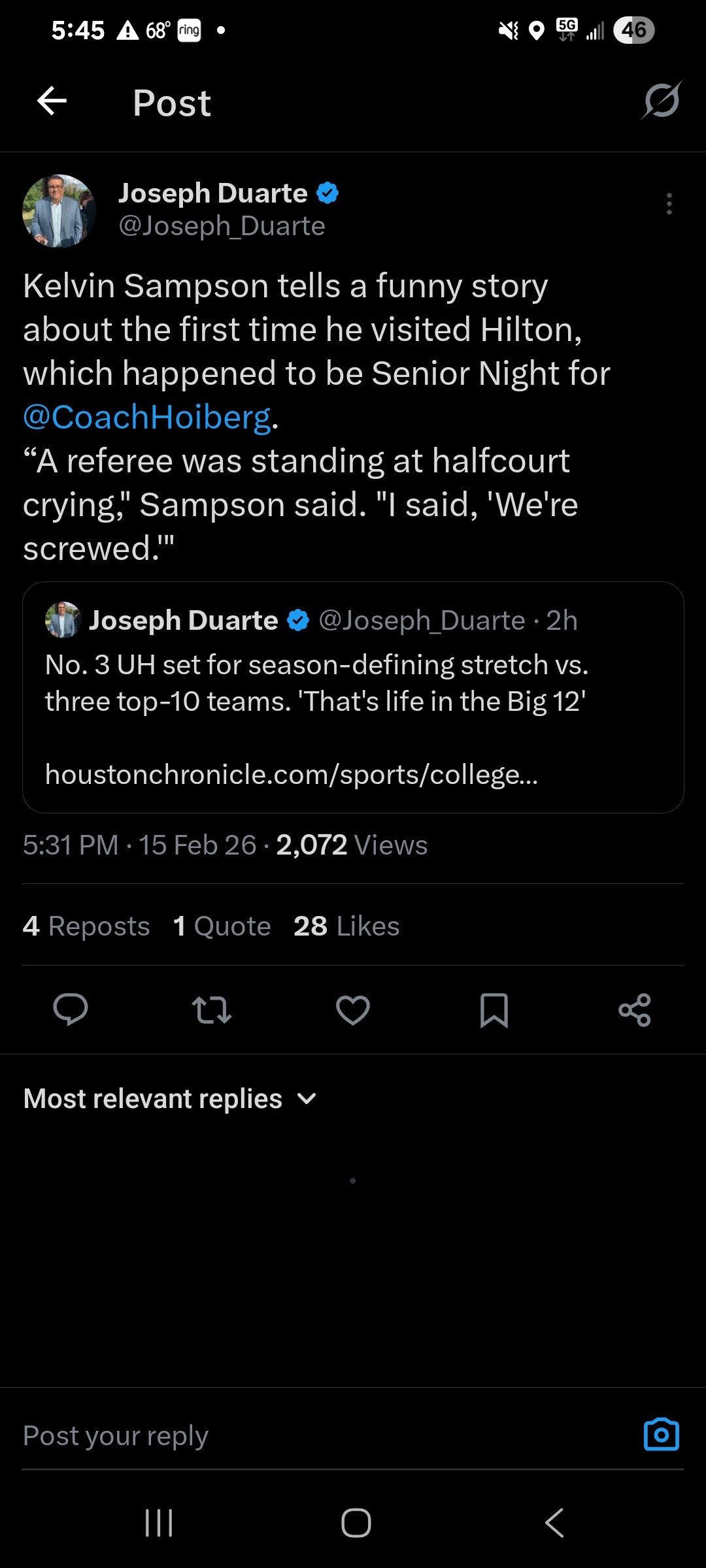fantastic opportunity for the coogs and iowa state. nba and nhl on hiatus and its the only college game of note.