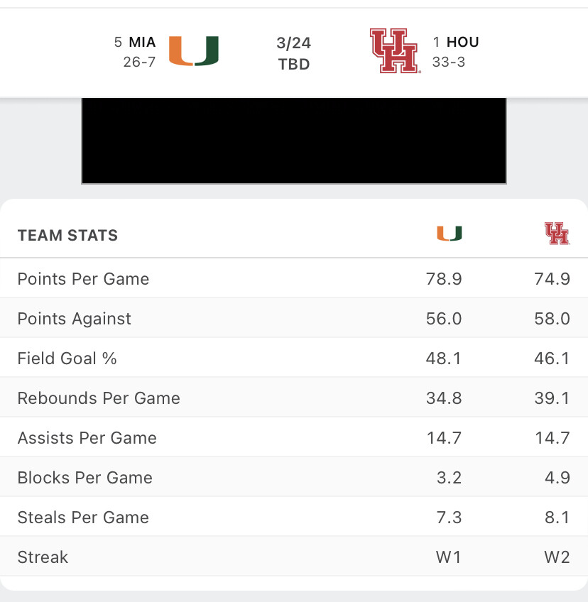 Miami can play. Letās get some rest and get ready to hoop. Iām guessing opening line Coogs -3.5. Go Coogs!