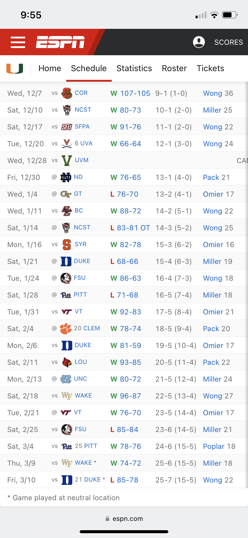Miami is not shy about shooting treys. They are very athletic and aggressive. Their guard Wong is so quick and a really good shooter.