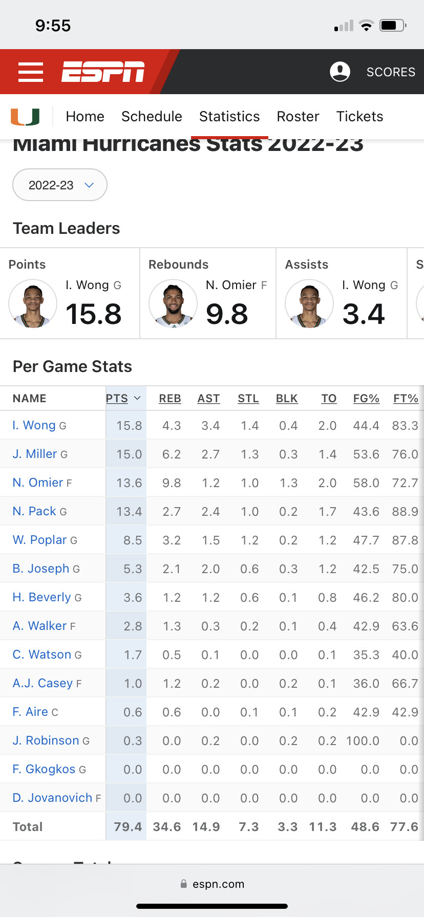 Luckily, Miamiās defense is atrocious (in the 100s in KenPom), and they shoot a ton of 3s and are somewhat streaky at it. They have that one big who is pretty solid down low but only on offense. Otherwise, they are generally pretty lanky and undersized. They turn the ball over a lot and donāt rebound particularly well. I actually like the matchup more after having looked into them a little more.