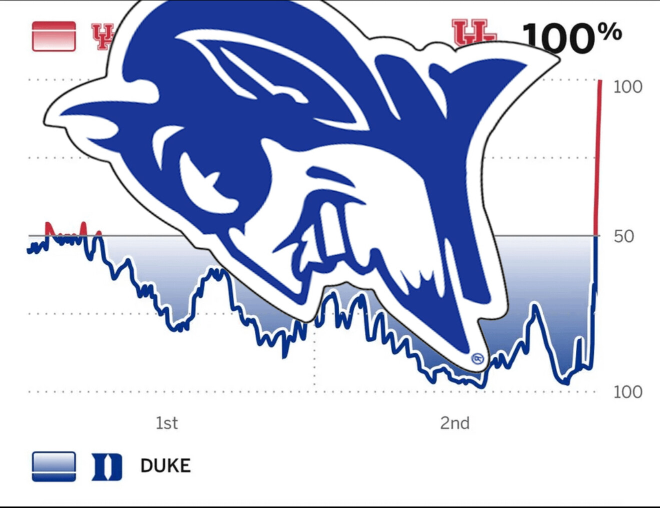 One of the best moments in Houston Cougars sports history my friends and I was there to see it. We were done and over and somehow managed to pull it out. Flagg is a freak and Duke is extremely good but Sampson and co. Got it done!