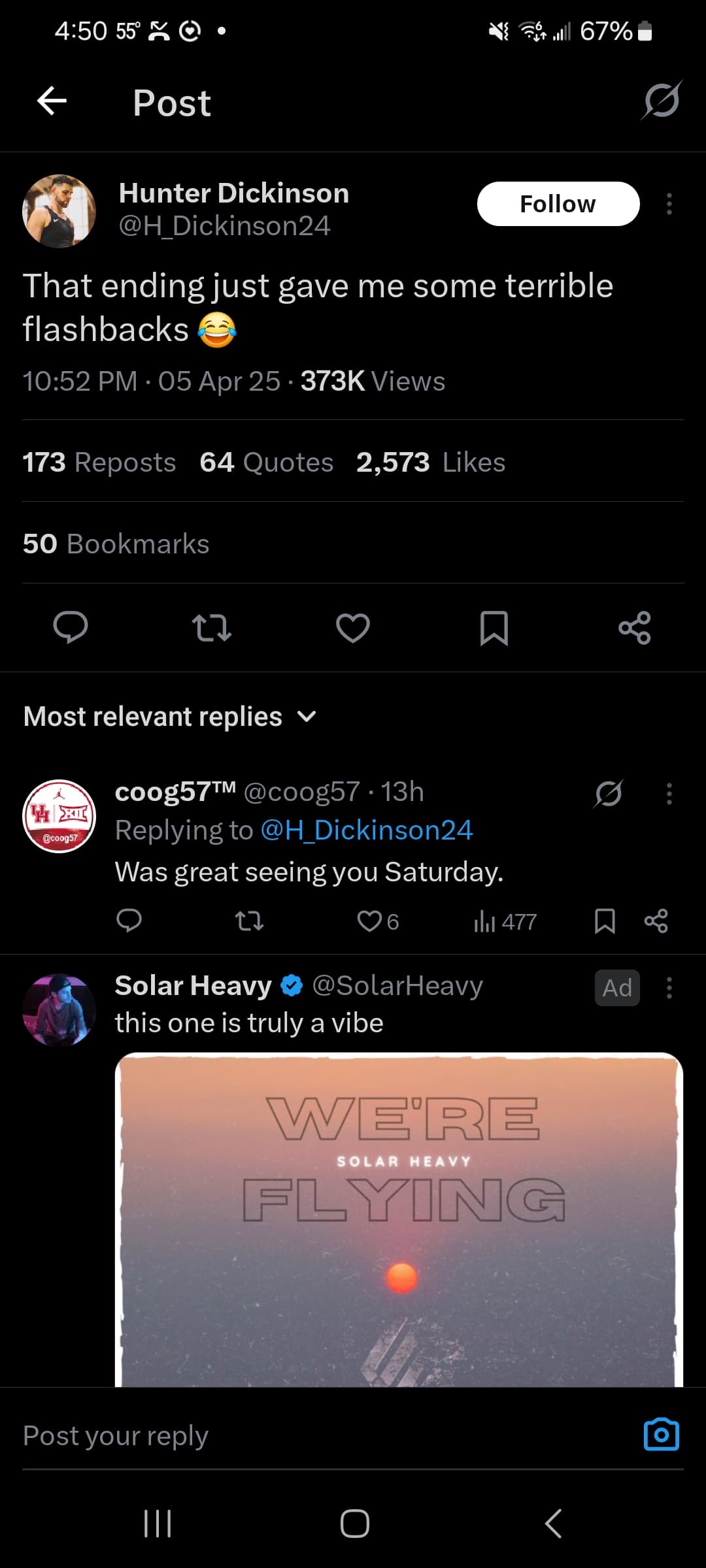 Just to let you know, I just rewatched the last 10 minutes of the game and we won again!!! Iām still on a Cougar High, in the clouds, and basking in the glow of a great win.