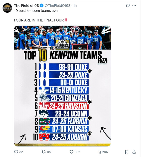 The clowns at the field of 68 after dark do not gives us chances in hell. They are saying this best duke team ever of man kind.