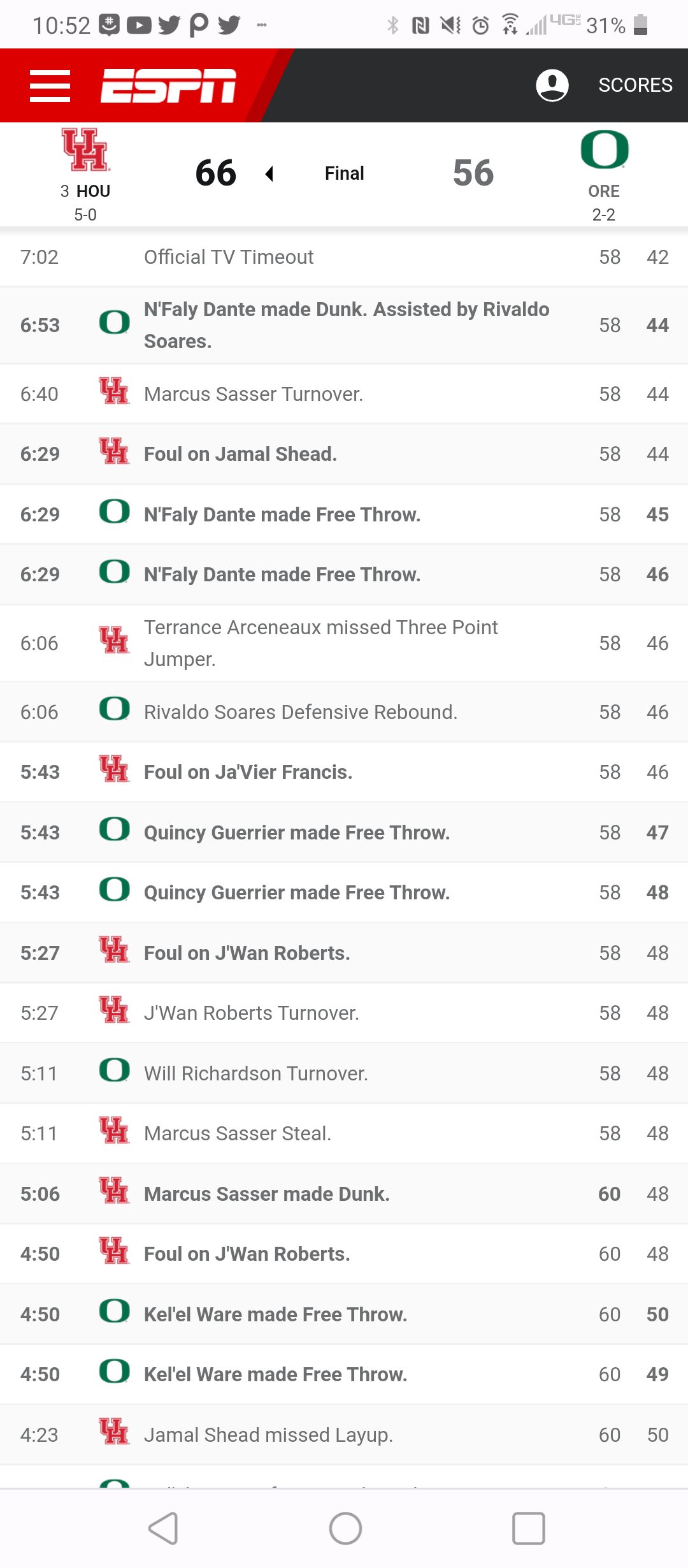 Do we get Oregon back here in Houston next year? We played our opening game at Fertitta against the Ducks but now have played them twice on the road and once more in a tourney last year.