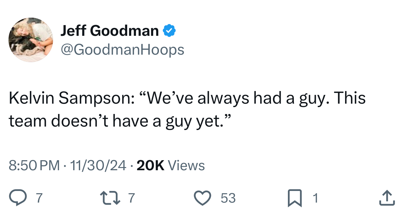 Before every game this tournament, the announcers said LJ is the best player on the team. He was our preseason all conference player. When he’s on, there’s no doubt our best player. But there are games he’s mediocre at best, not even good. That was my biggest complaint about Grimes until his last season. Your superstar’s “bad” games should be average at worst