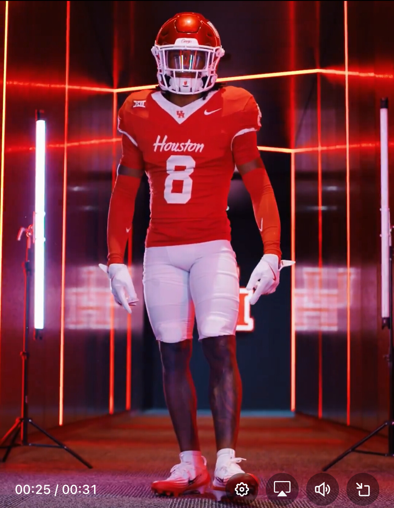 Uni reveal. Red helmet and jerseys. “Coogs” on front of helmet is a nice touch.