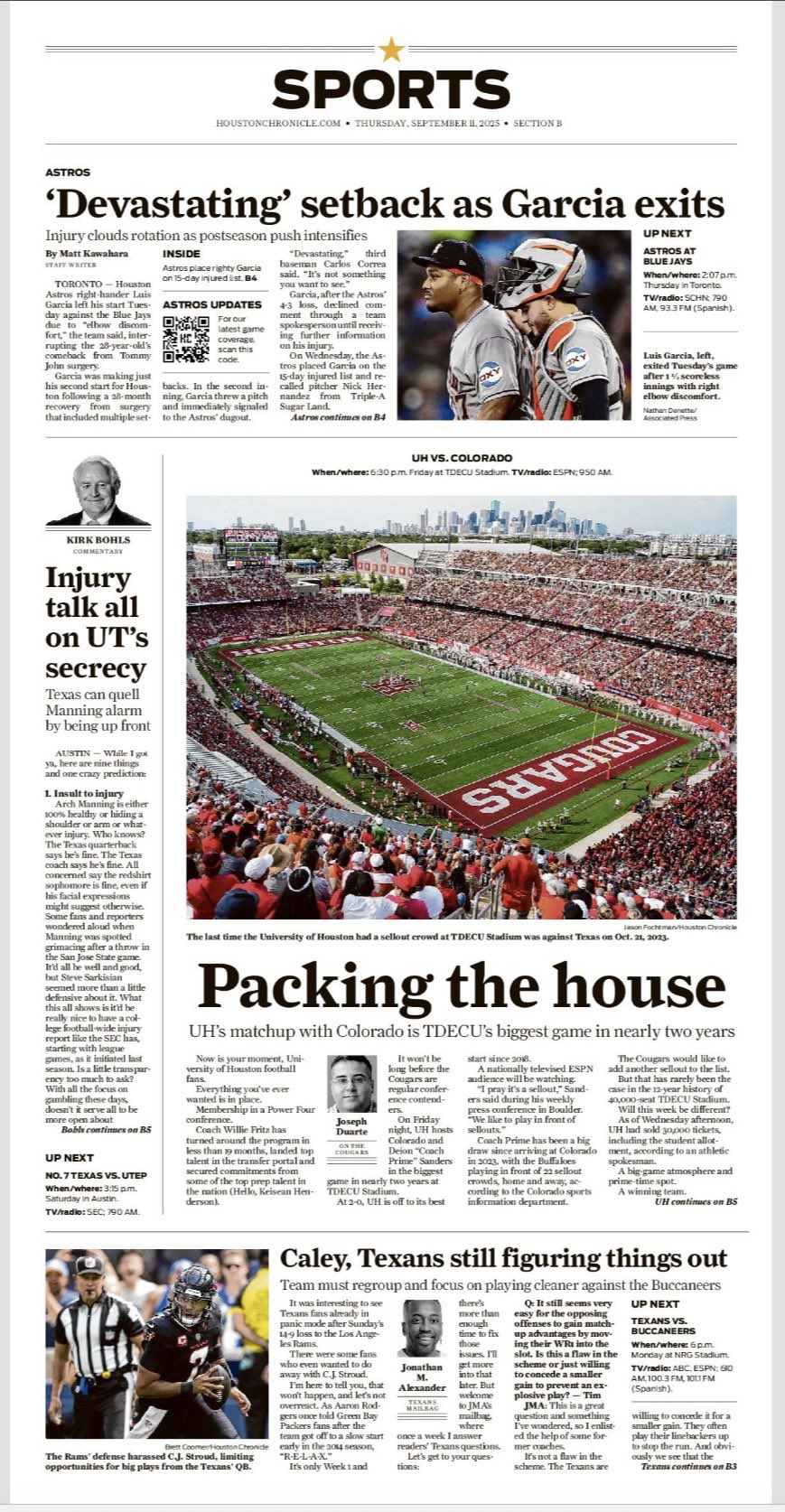 I will give Coach Prime a ton of credit, I was one of those who thought he would check out after his kids left. But there he is, even after what sounds like a tough summer healthwise. Shame on me for doubting. Having said that, I hope we hang a hundred on them tomorrow night. Go Coogs!