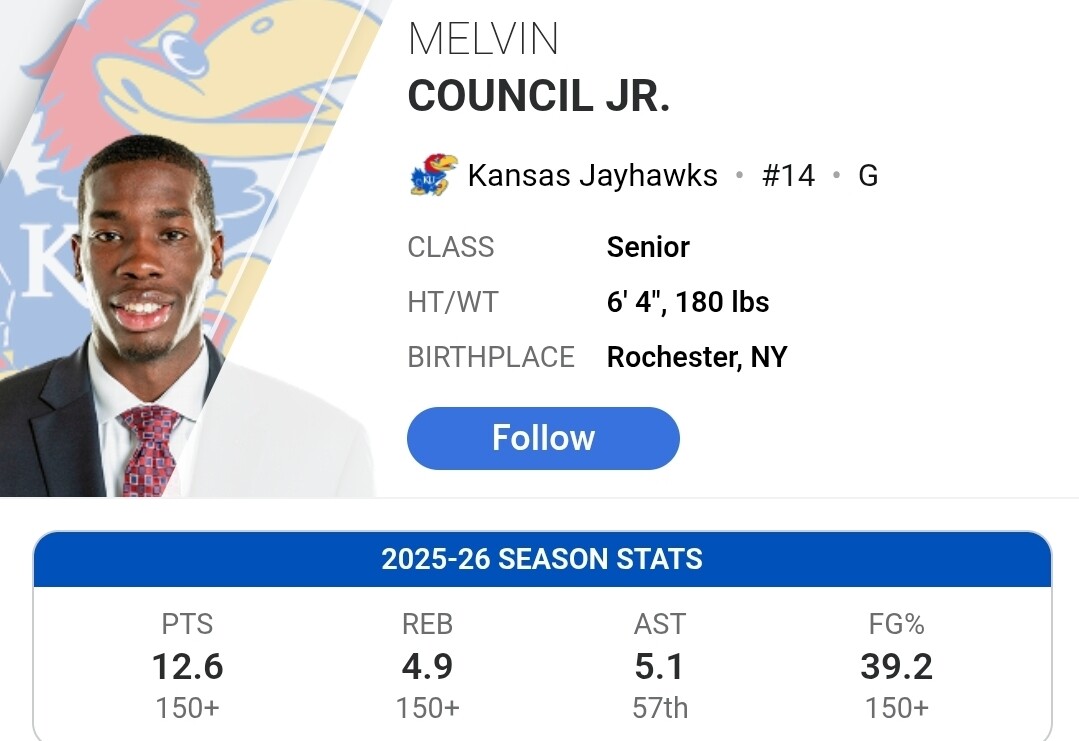 Enjoyed watching Melvin Council Jr. Good luck to him