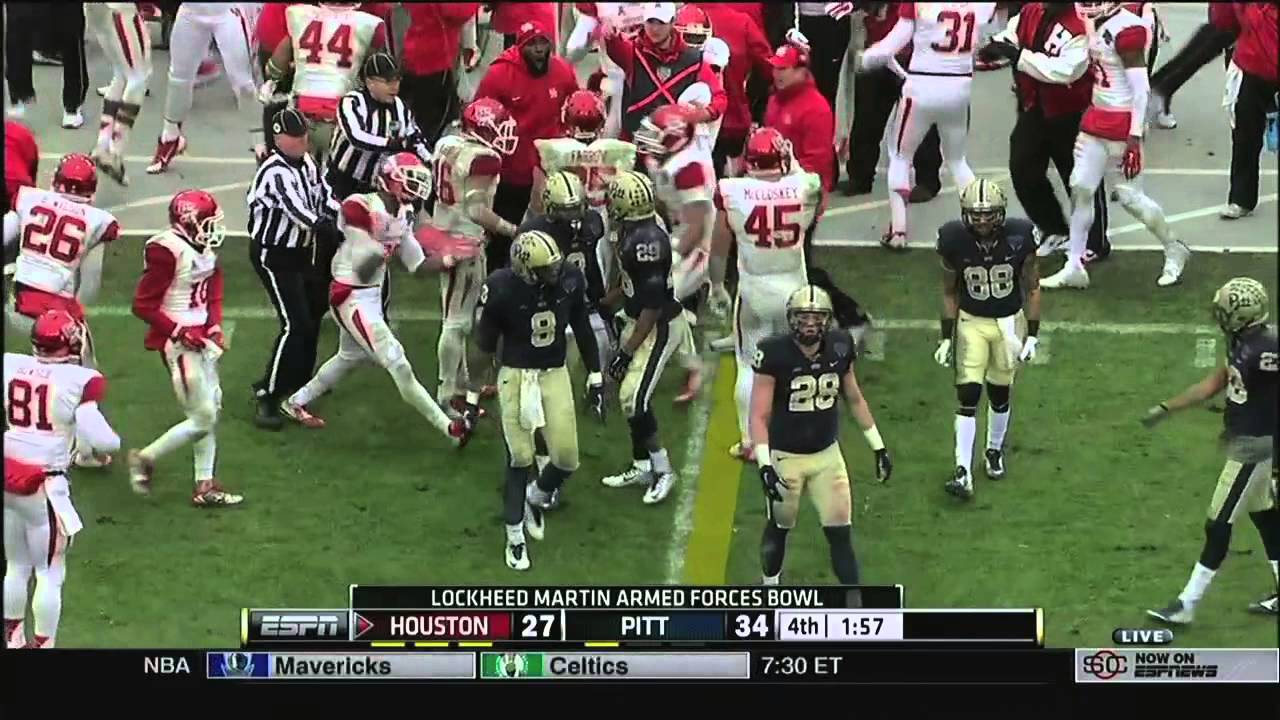 On January 2, 2015, The Houston Cougars were able to score three touchdowns in the final 3:41 of the game to win the Armed Forces Bowl over Pittsburgh, which set the record for the largest fourth quarter comeback in NCAA Division I Bowl history.