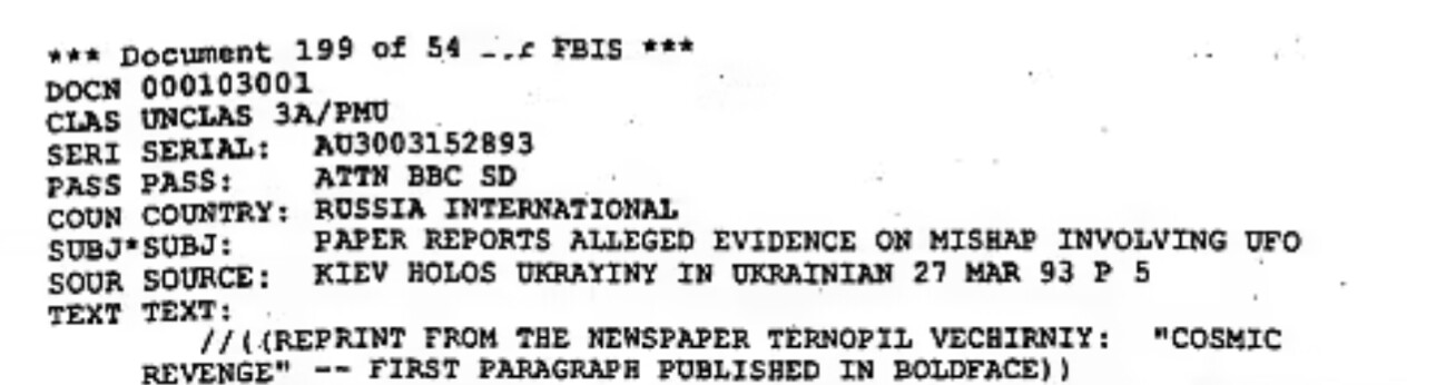 That declassified file is a reprint of a Russian newspaper from 1993. It was also reported on over 2 years ago.