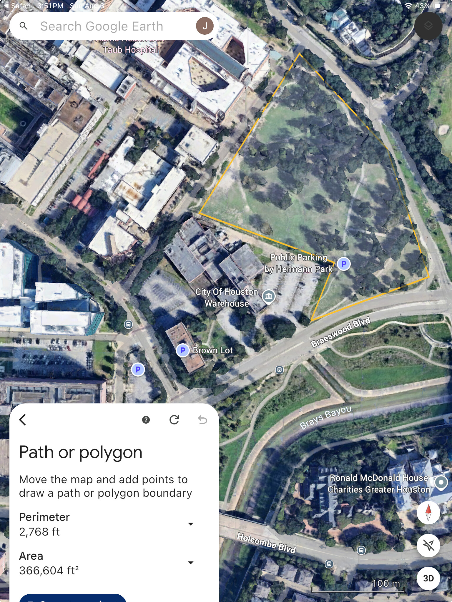 That triangle piece is already part of Hermann Park. So the “L” would just make it a more useable piece of land.