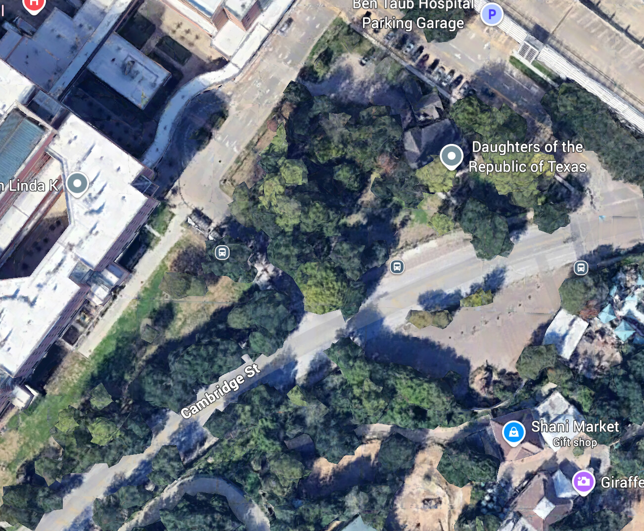As for access, you can’t close Cambridge, it’s a major entrance to TMC for emergency vehicles and patients alike. You can cross at grade (pedestrian signals), go under with a tunnel (there’s a similar tunnel crossing under MacGregor nearby), or go over with a bridge.