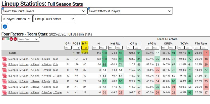 I think some fans are coping with the fact that UH isn’t arguably the best team in the nation like they have been the previous 4 seasons. UH has losses to tennessee, arizona, iowa state and tech. UH is somewhere around the 6th-10th best team in the nation. I would say their floor is losing 2nd round and ceiling is Final Four. I think UH goes out in round of 16 or 8, depending on who the matchup is.