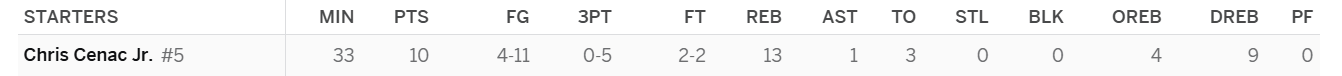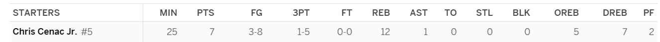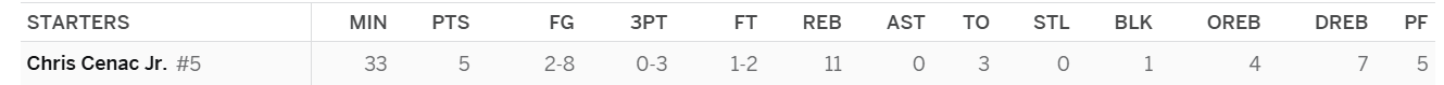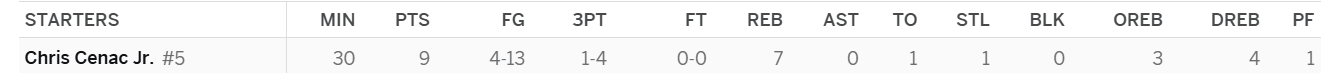 Anyone that has played sports knows that physically your body can only handle so much. What we as fans do not realize is how good the BIG12 is. It is IMO the best basketball conference and by far. The announcers made it a point telling the audience how good the BIG12 is. Our schedule is brutal and these three losses reflect that. You look at all of the top BIG12 teams and they lost games just like we did. We now have five days before we play Colorado then it is on to baylor and OSU. These three games are tailored made for us to get our legs back and refine an offense that is still trying to find its true identity. The margin between winning and losing against elite teams is minuscule. We as fans forget it because we blindly think we can win every game with ease. That is never the case. Our offense is where I am the most concerned. I go back to the same conclusion on what role and how effective is Chris’ role on this team. CKS has been clear on how he wants Chris to play. The following question is fair. Is it working to his plans? Let’s look at our losses vs Cenac’s production: