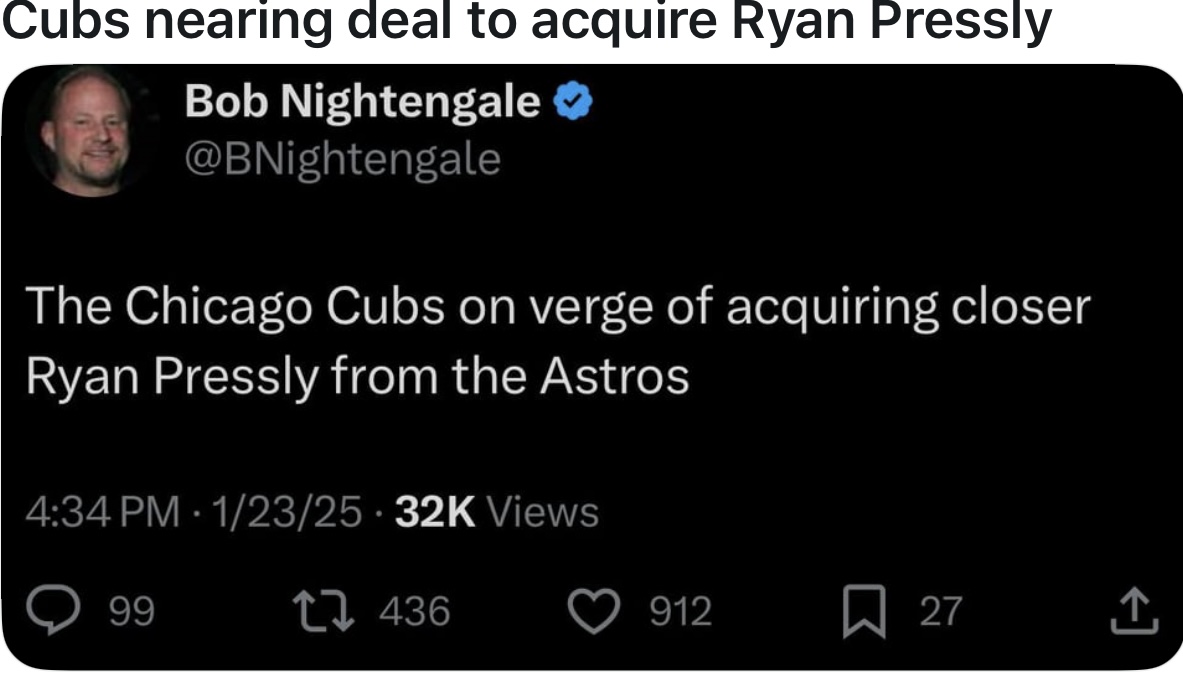 Oh, yes…I should clarify. I would only support a fast track for Cam if no other upgrades are made. I’d be good with Profar…hell, at this point, I might even be good with a Pressly-Suzuki straight-up swap to the Cubs!