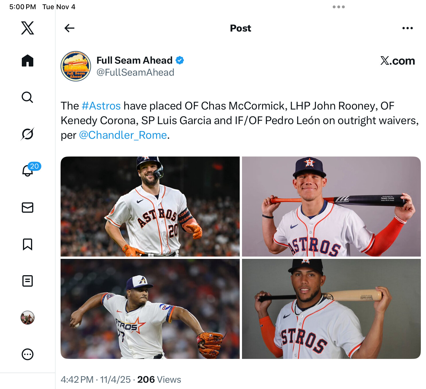 BTW, not sure how Funk is gonna take the news when he finds out Chas was outrighted….