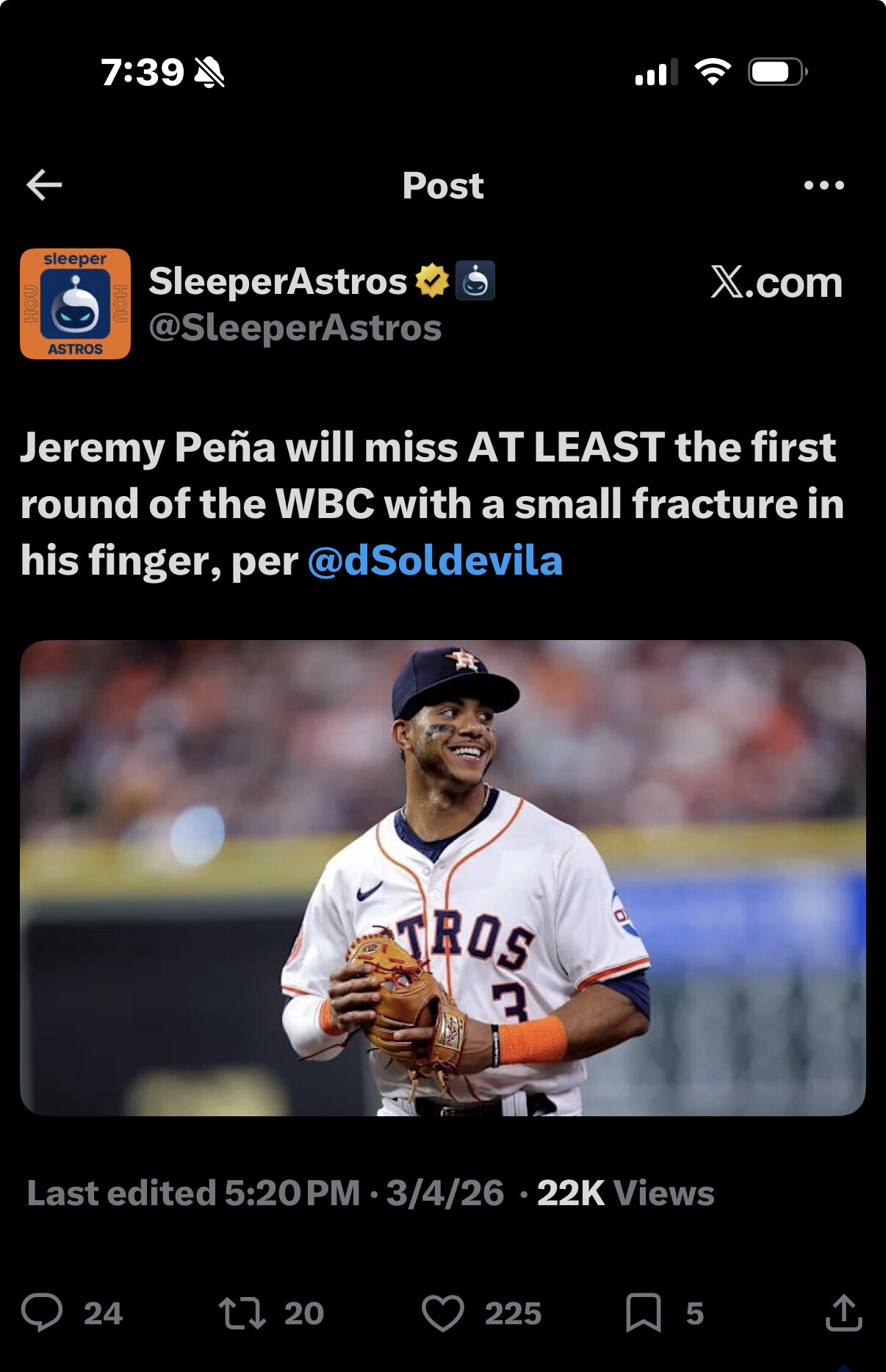 Normally I wouldn’t worry about a fractured glove finger but this is the Astros. They get their doctors off Reddit and their CT machines off Temu.