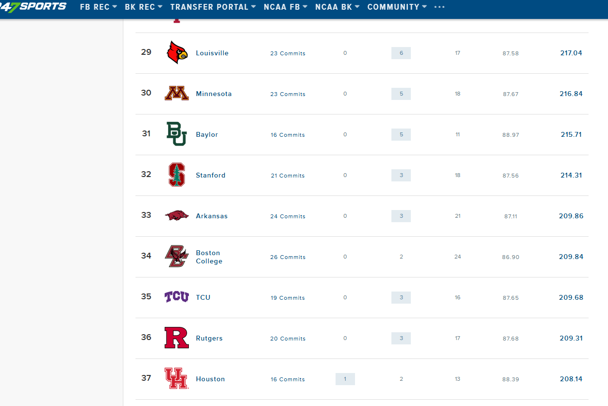 Add 4 high 80 recruits and we’re easily in the top 20 range.