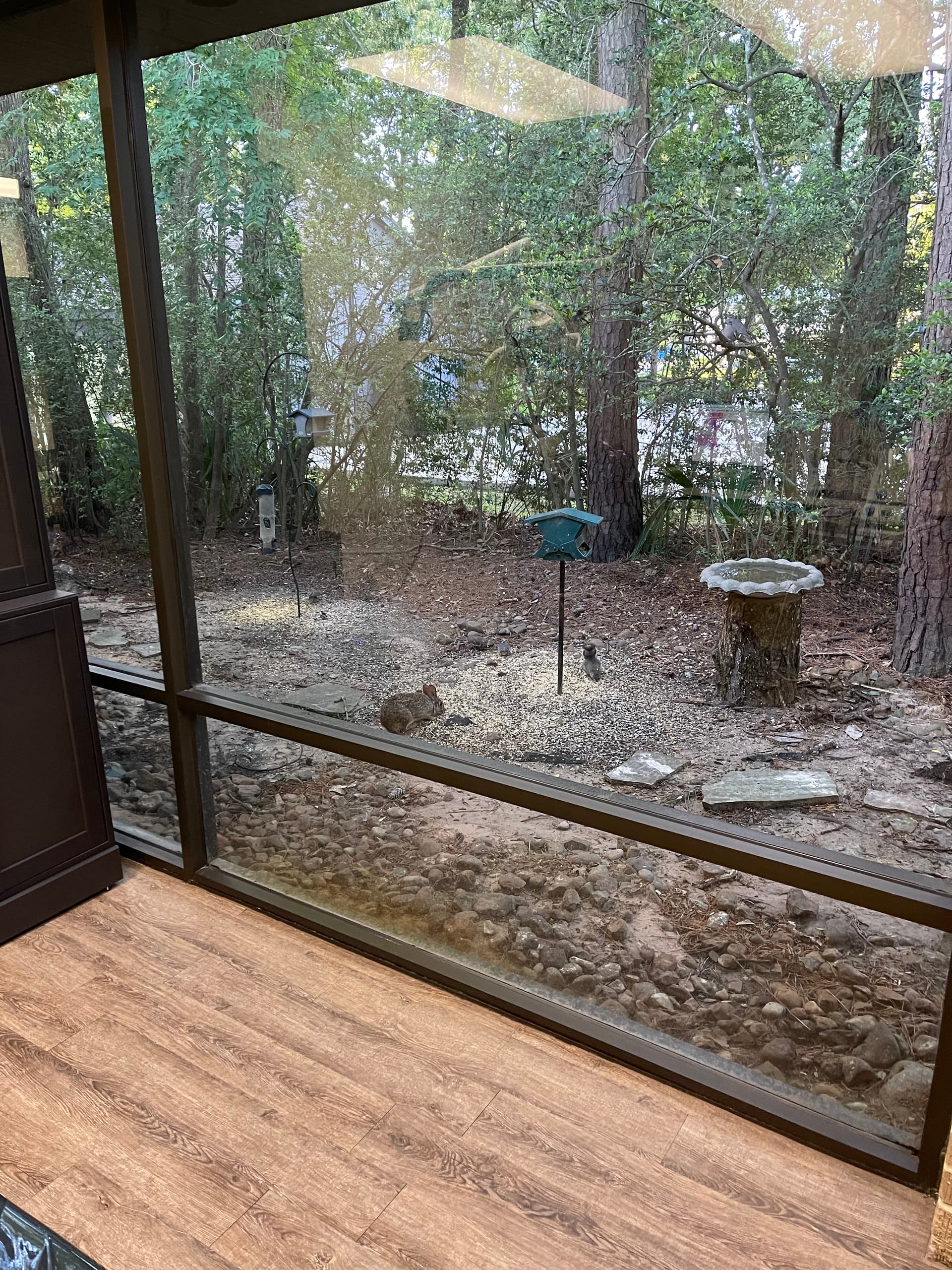 I have large “window walls” in the treatment rooms and have set up feeders for the creatures. They always put on a show especially the squirrels. Better than a TV. I am sometimes amazed at what shows up, hawks, blue jays, cardinals, finches, woodpeckers, turtles, squirrels and even rabbits.