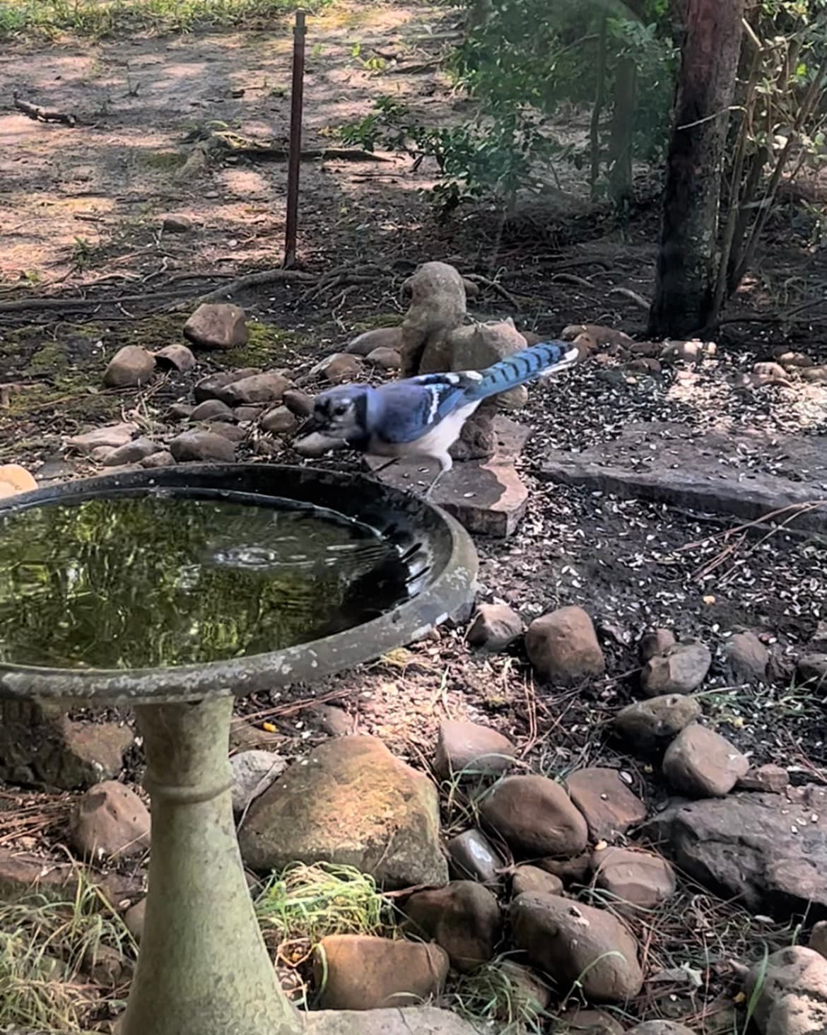 we put out the feeder but they are more interested in the brightly colored bird bath
