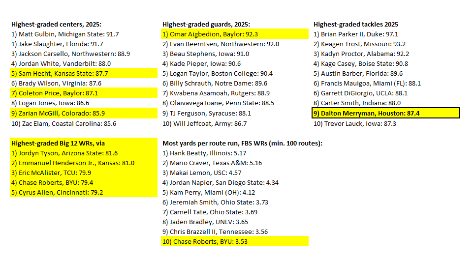 The other point on the OL. At Tulane, they developed those offensive line. Which requires two key components. 1.) Recognizing talent that can be developed. 2.) Time to develop.