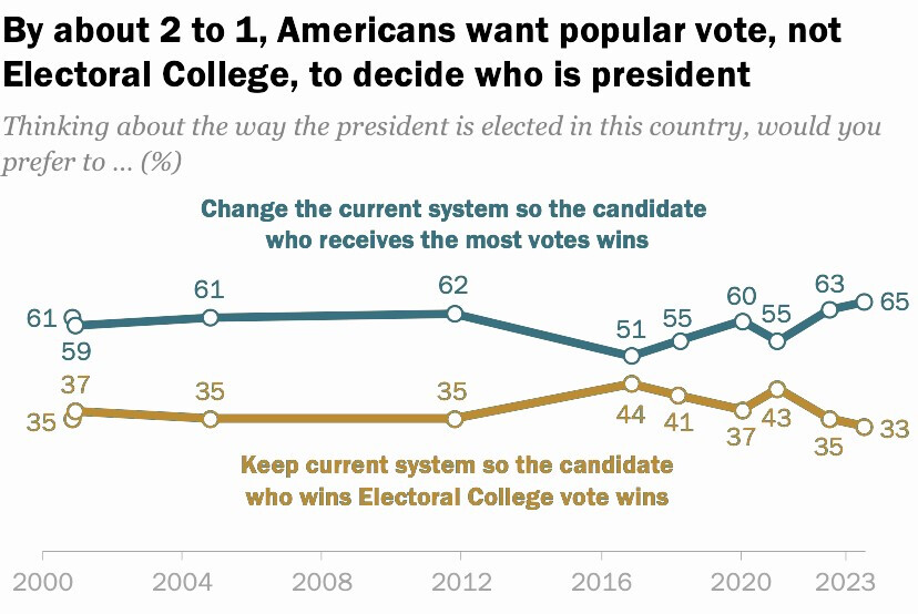 Wanting to get rid of the electoral college doesnât make one a democrat. It means you want every vote to count the sameâŠlike every other election in the US except the President. No state does it like that for their governor. The EC was fine 200+ years ago when getting information about national candidates was hardâŠtoday itâs just stupid.