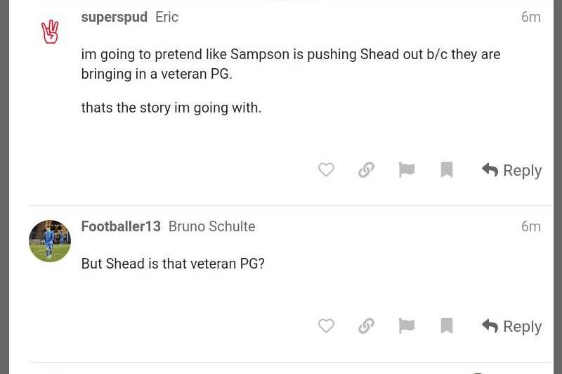 im going to pretend like Sampson is pushing Shead out b/c they are bringing in a veteran PG.
