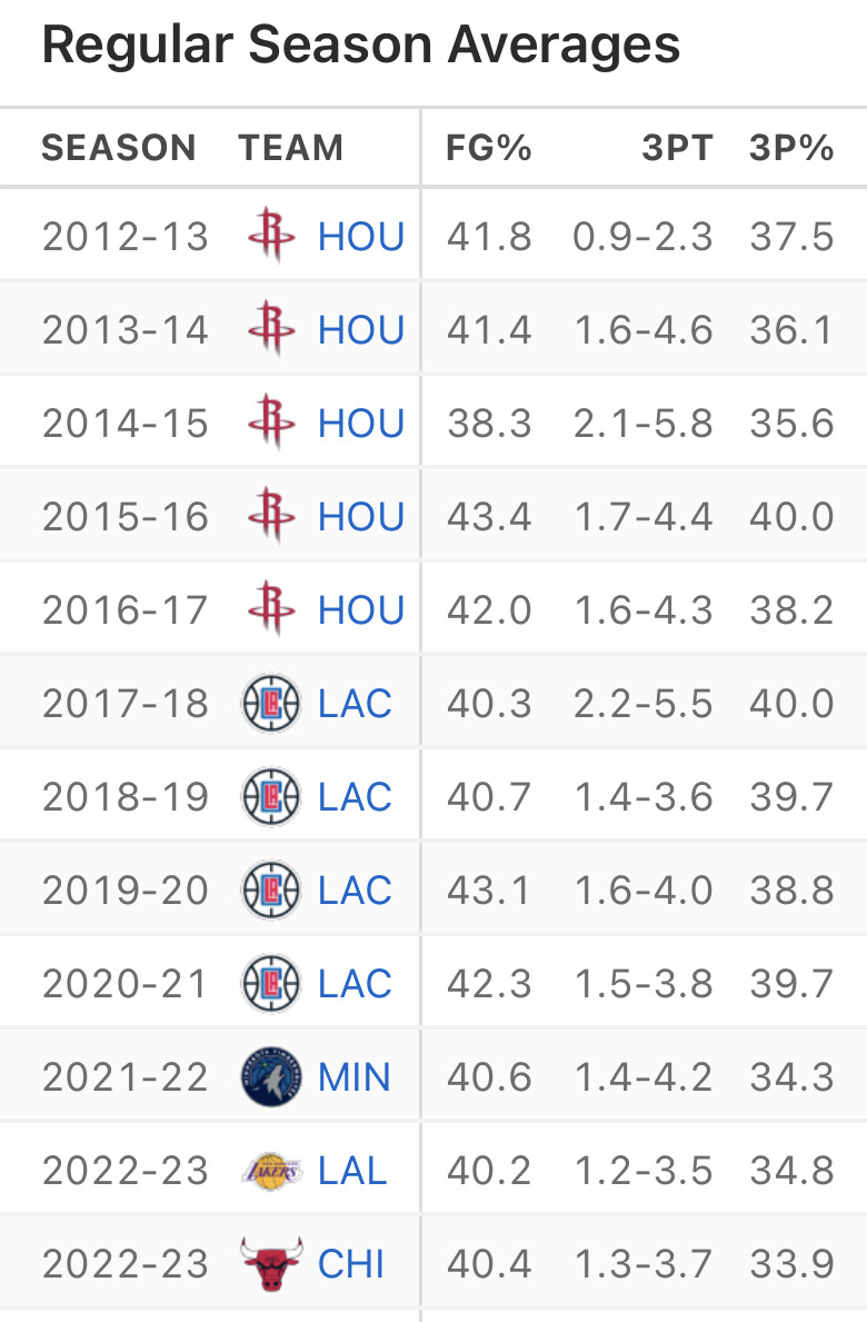 Shot 29.8% from 3 in 2022 and only improved it to 31% in 2023