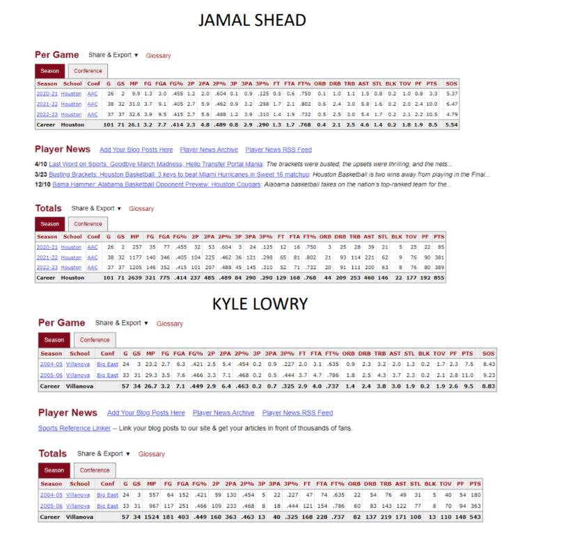 Their college stats are pretty comparable except for Lowry’s 3 point % and Shead’s assists…