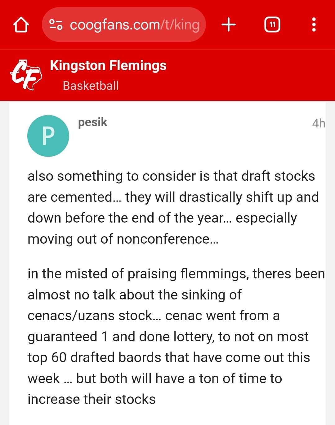 Also yes… you’re statement was that Cenac’s stock is falling so bad that he is now not even being projected in the top 60 on MOST draft boards.