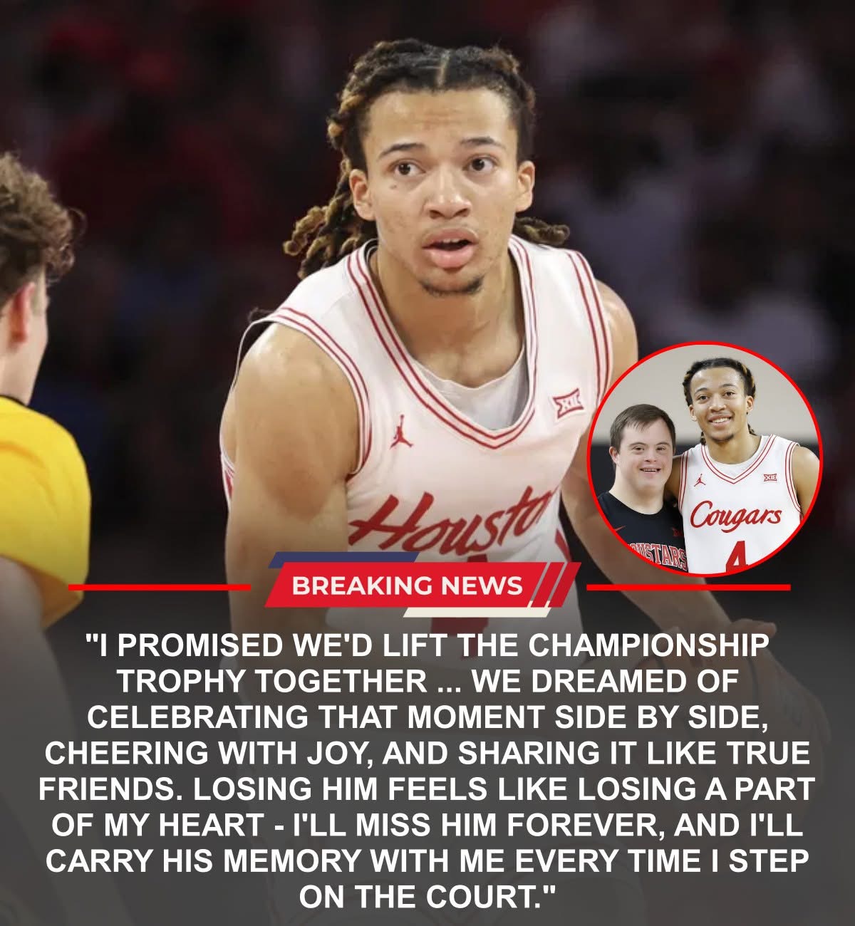 HEARTBREAKING PROMISE: Kingston Flemings breaks down after losing a Houston Cougars fan he called a friend for nearly 10 years āāI promised weād lift the championship trophy together⦠Iāll miss him forever.ā