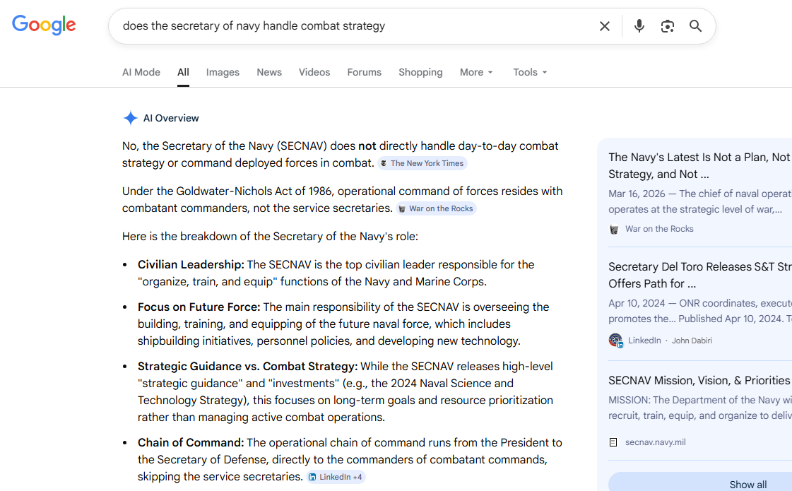 I thought we were talking about the Secretary of the Navy