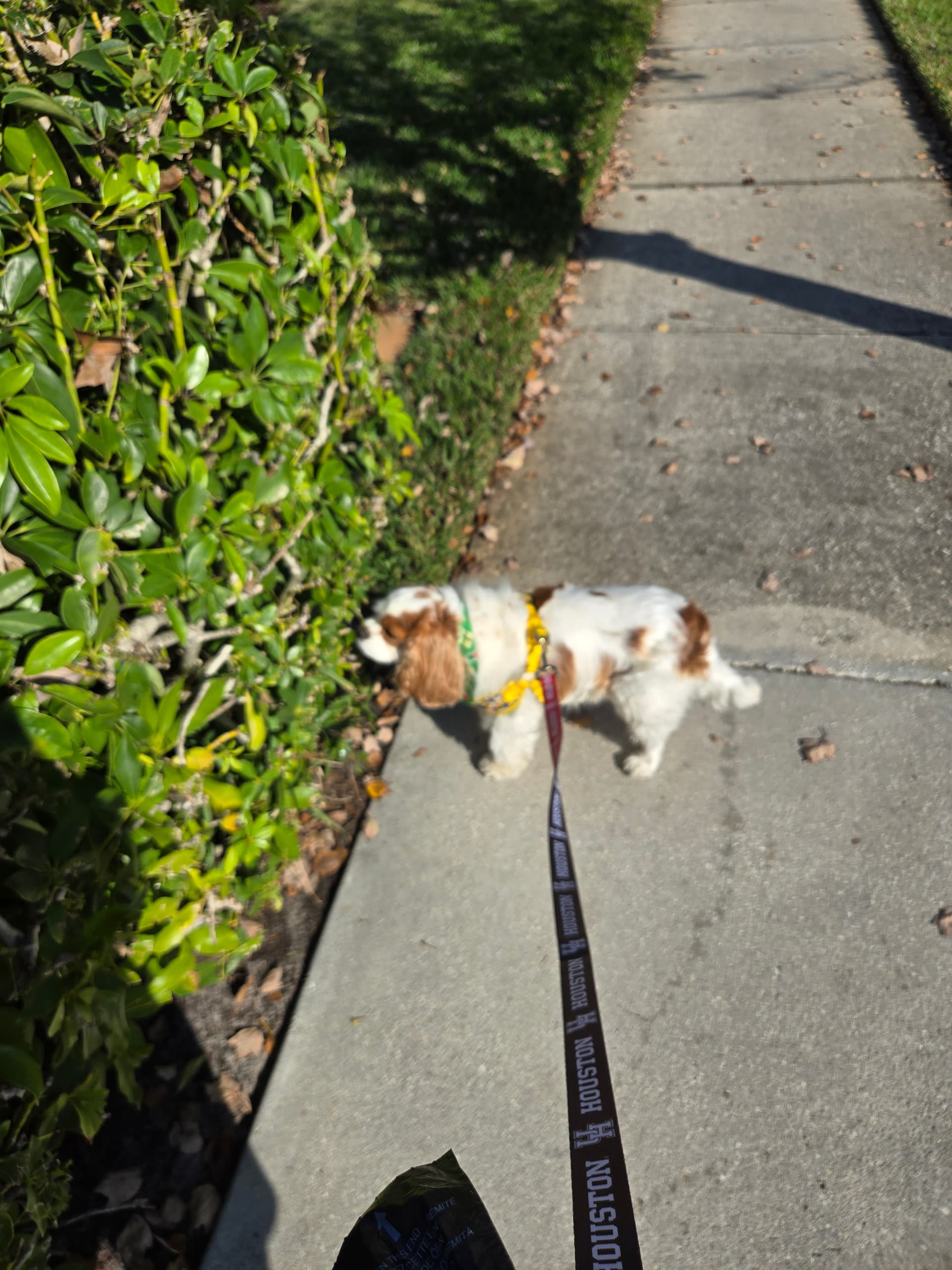 Merry Christmas! My wife got this very cool leash for our 6 year old cavalier king charles spaniel named Toby. Black on one side red on the other.