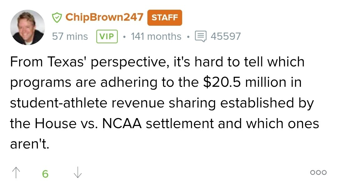 So for example, for next season it seems that Texas Tech will spend $20M+ base, plus $20M+ prior years’ NIL plus $10M+ current year NIL…adding up to their total football players compensation next season being ~$50-60Million. And so by comparison, UT and ATM are seemingly spending somewhere around $70-$80Million/year on football player compensation.