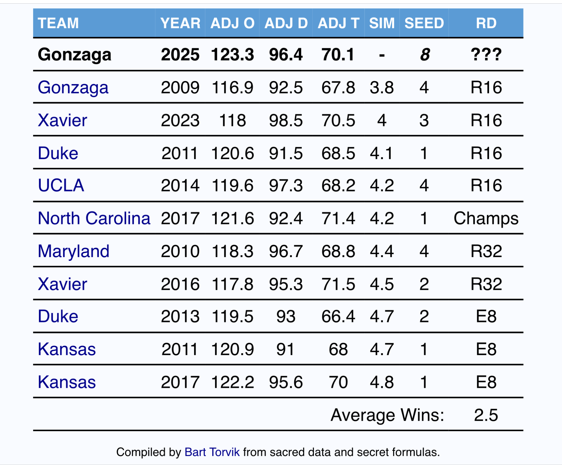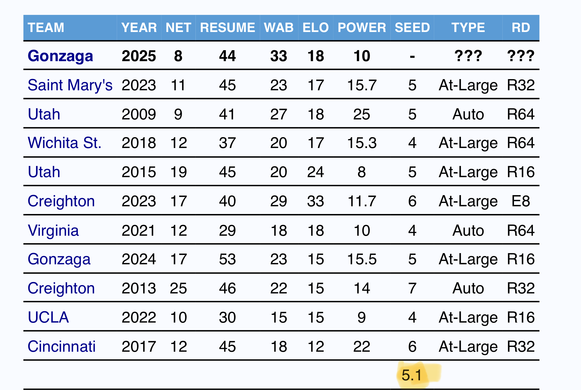 They left out the Zags who are 9 and 29