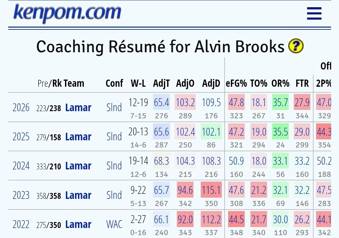 The problem is getting a job like that right as the transfer portal and NIL era started. I believe he lost their leading scorer to transfer portal every single year. And still improved each year til this year. Lamar puts no money into their athletics, so not surprising kids chase money. Personally think he got screwed a bit. Watched quite a few games this year. He just signed an extension last offseason and out that quick. Somebody behind the scenes was making moves