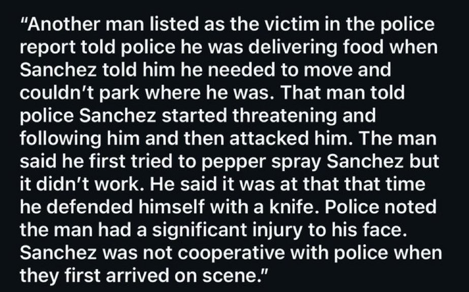 Apparently Sanchez was not cooperative with law enforcement when they arrived on the scene
